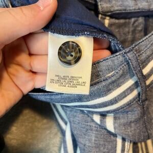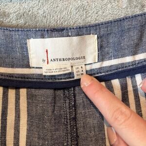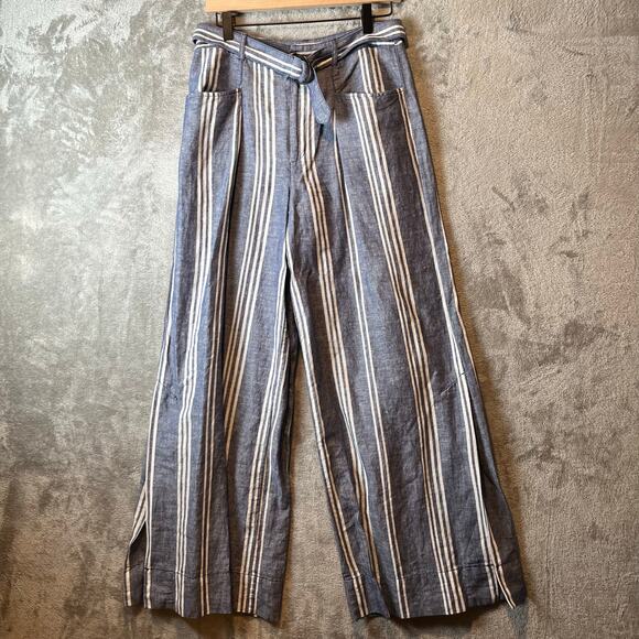 Anthropologie Womens Beachy Wide Leg Pants Linen Blend Blue White Striped Size 4