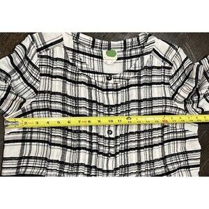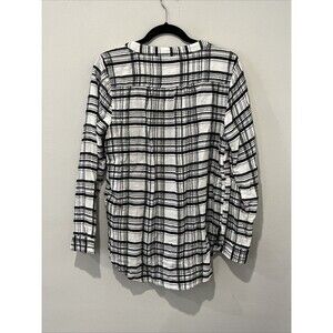Anthropologie Women's Blouse Size 10 Black Plaid Tunic Button Down Wool Blend