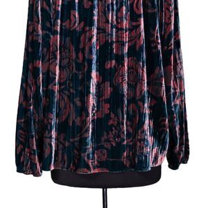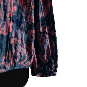 Anthropologie Women's Blouse Teal Peach Floral Velvet Oversized Tie Front Top L