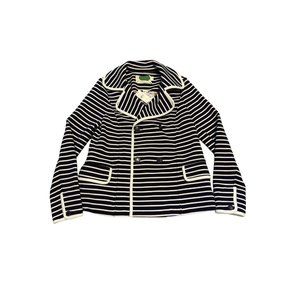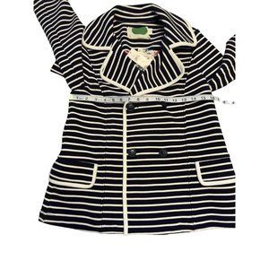 Anthropologie Womens Blue White Stripe Nautical Peacoat Blazer Jacket Size XS