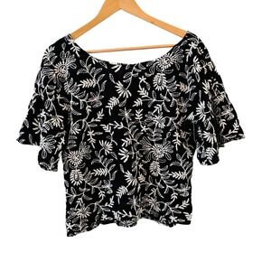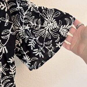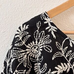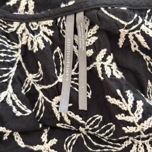 Anthropologie Womens Embroidered Floral Boho Top Size L Black White Cotton Beach