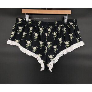Anthropologie Womens Eyelet Micro Shorts L Black Floral Pajama Shorts Loungewear