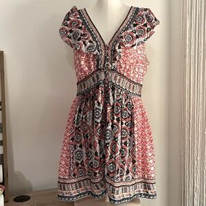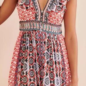 Anthropologie Women’s Flutter Printed Mini Dress Boho Summer Size 16