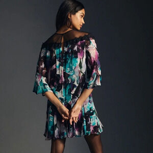 Anthropologie Women’s Flutter Sleeve Dress Whimsigoth Fairy Grunge Watercolor L
