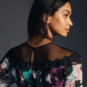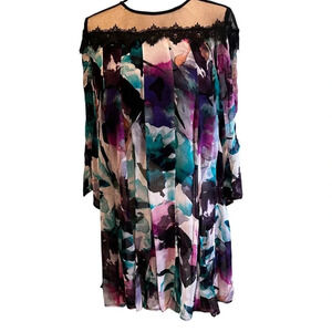 This Anthropologie L Flutter Sleeve Dress is a perfect addition to your wardrobe. The dress features a beautiful multicolor floral pattern that gives it a whimsical and fairy-like vibe. The dress has 3/4 flutter sleeves, a boat neckline, and a hook & loop closure for easy wear.