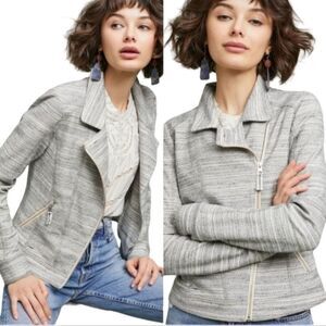Anthropologie Women’s Gray Caitlin Knit Moto Jacket zip front no size tag