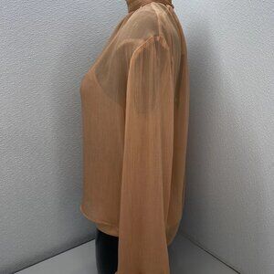 Anthropologie Women’s High-Neck Sheer Long-Sleeve Blouse – Rose Pink – Size XL