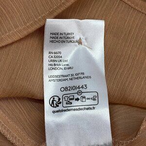 Elegant and feminine, this Anthropologie blouse features a soft rose pink hue with a semi-sheer finish and graceful high neckline. Designed with long sleeves and subtle drape, it’s perfect for layering under blazers, pairing with tailored trousers, or tucking into skirts for an elevated day-to-night look.