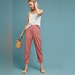 Anthropologie Women's Longshore Cotton Cropped Pull On Pants in Red Size Small