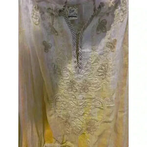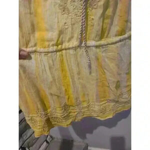 Anthropologie Women's M Yellow Floral Embroidered Sleeveless Tunic Blouse Boho