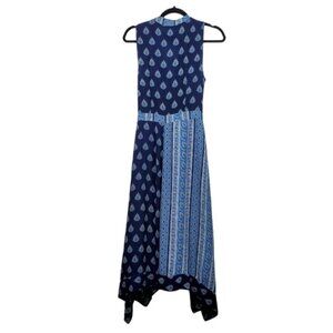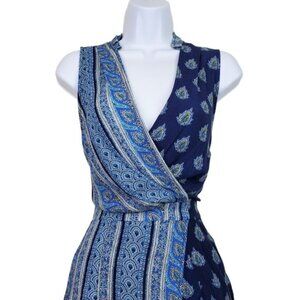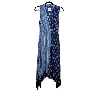 Anthropologie Womens Maeve Sleeveless Blue Eclipsed Faux Wrap Midi Dress Size 2