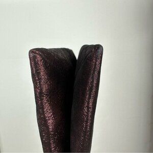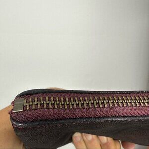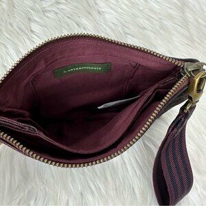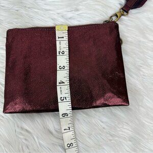 Anthropologie Women’s Maroon Leather Metallic Wristlet Small 5.5" X 7.5"
