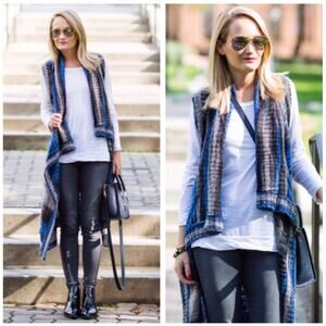 Anthropologie Women's Moth Spacedyed Blue Duster Vest Cardigan Size XS
