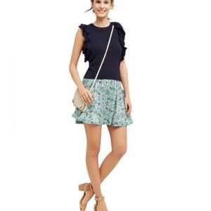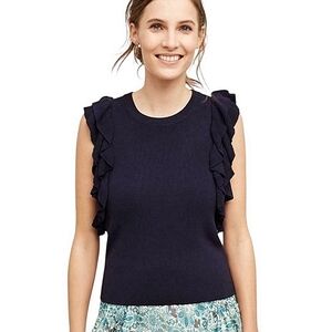 Anthropologie Women's Navy Blue Ruffle Sleeve Knit Sweater
