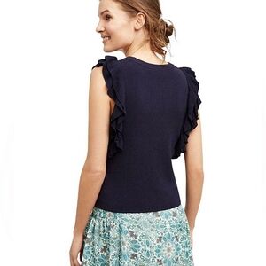In excellent pre-used condition Anthropologie Women's Navy Blue Ruffle Sleeve Knit Sweater