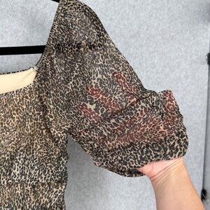 Anthropologie Womens Off-the-Shoulder Shirred Mesh Top Size XL Leopard Print NEW