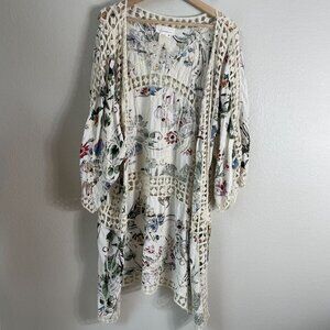 Anthropologie Womens One Size Clea Crochet Floral Embroidered Kimono Jacket