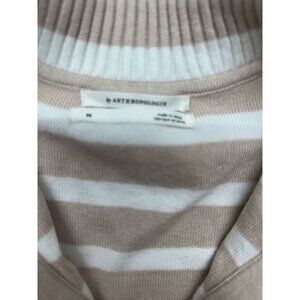 Anthropologie Women’s Oversized XS Cropped Sweater Tan White Striped Collar