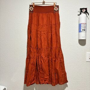 Anthropologie Women's Poetry Maxi Skirt Brown XS Geometric Pull On Bohemian