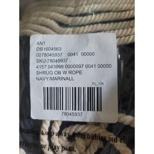 This classic navy blue and white shrug from Anthropologie is a stylish statement piece that can be worn in a variety of ways.