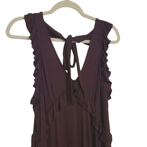 Women's deep v-neck maxi length ruffles sleeveless dress by Anthropologie, size XL. Dress has a toe on the back of the neck to adjust fit.