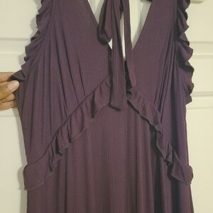 Anthropologie | Women's Purple V-Neck Ruffle Maxi Length Dress (US Size XL)