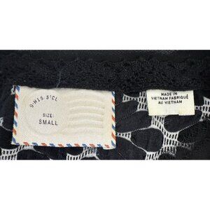 Anthropologie Womens S Black White Blouse Textured Wavy Knit Geo Print Boho Chic