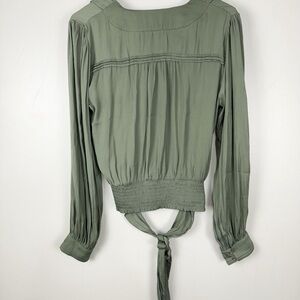 This elegant green top features a flattering wrap design and long sleeves, perfect for any occasion.