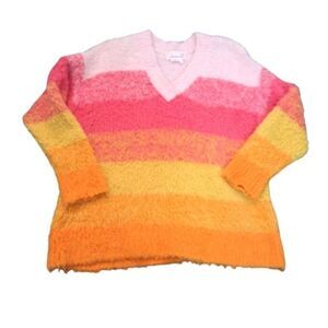 Anthropologie Women's Simone Striped Sweater Pink Orange Multi V Neck Medium