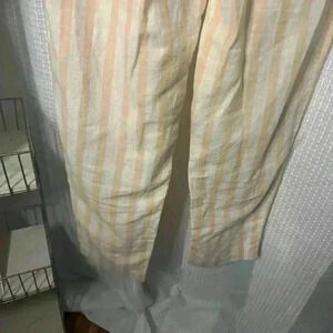 Anthropologie Women’s Size 2 Oasis Striped High-rise Linen Pants in Peach/Cream