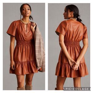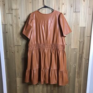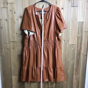Anthropologie Womens The Somerset Faux Brown Vegan Leather Midi Dress Sz 2X