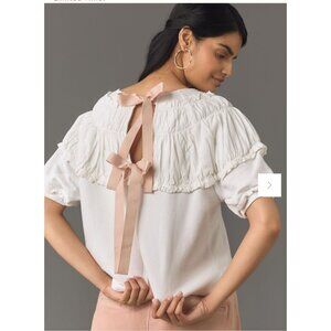Anthropologie Womens Top XXS NWT Bow Ruffle Peasant Cottagecore Coquette Dainty