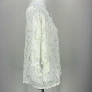 Anthropologie Womens White Lace V-Neck Blouse With Flutter Sleeves