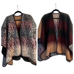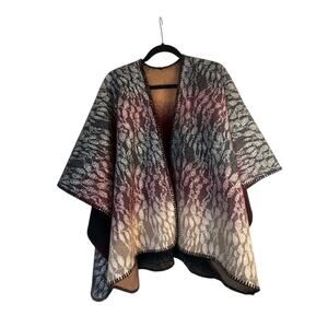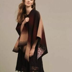 Anthropologie Women's Wool Wintertide Reversible Poncho Boho Cardigan