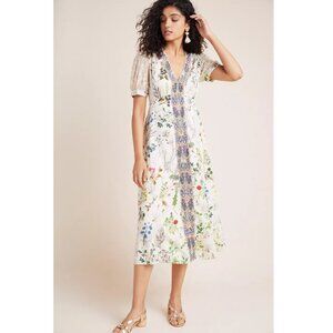 Anthropologie Women’s XS Donna Floral Embroidered Cream Midi Dress Cottagecore