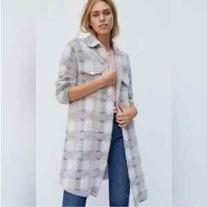 Anthropologie Womens XS Eliza Shacket Eye lash Longlined Plaid Soft Preppy