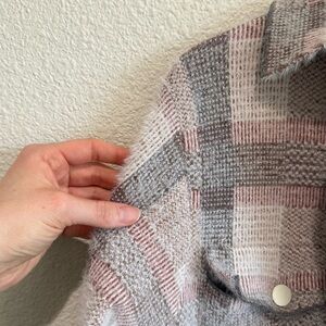 Lovely, long shacket from Pilcro. Full snap closure front. Two front snap pockets. Super soft and cozy eyelash finish. Silver/Pink/cream light pastel plaid colorway. My pics don’t do it justice-it is lovely!