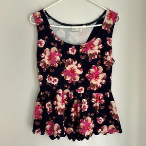 Anthropologie Women’s peplum flowers floral scalloped tank top size Medium EUC