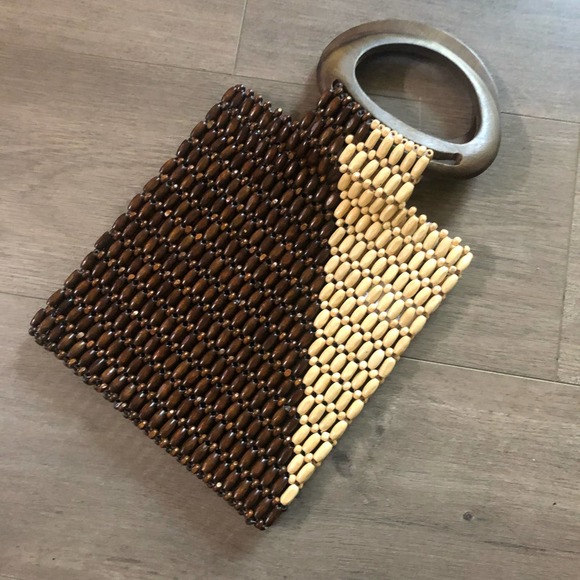 Anthropologie Wooden Beaded Two-toned Bag/Purse