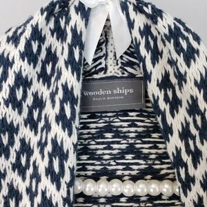 Anthropologie Wooden ships Navy and White Cardigan SZ S/M