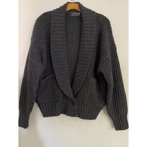 Anthropologie Wool Blend Sweater Cardigan Women S Gray Ribbed Chunky Deep V Neck