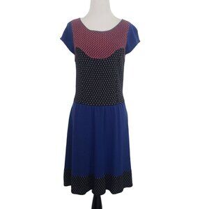 Anthropologie Wool Knit Dress Mixed Print Polka Dot Blue Pullover Womens Small