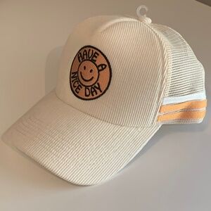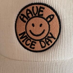 Anthropologie Worn/West NWOT Have A Nice Day Trucker Hat Corduroy Smiley Face OS