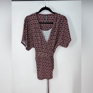 Anthropologie Wrap Mid Century Boho Short Sleeve Full Length V-Neck Blouse