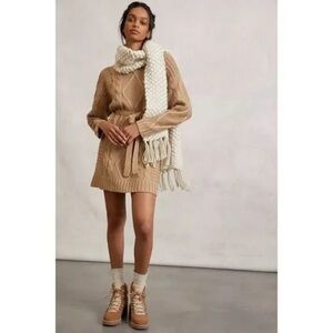 Anthropologie X Amadi | Leah Cable Knit Tan Mockneck Sweater Knit Dress Large