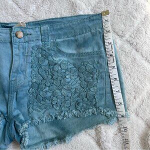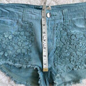 Anthropologie X Black Sheep | Green Floral Lace Front Shorts | Size 29