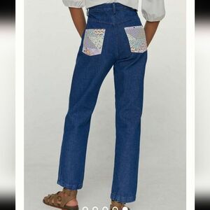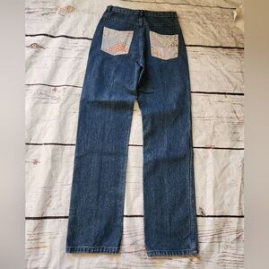 Invite artisanal charm to your closet with this wear-anywhere pair of jeans, where patchworked pockets lend a hint of fresh-picked femininity. *In excellent condition.