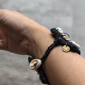 Anthropologie X Cocobelle Black Woven Papua Shell Beaded Bracelet