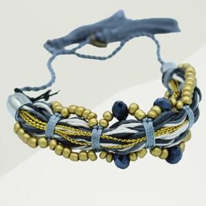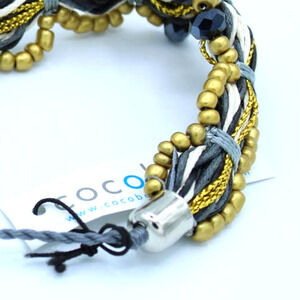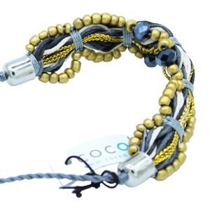 Anthropologie X Cocobelle Gold Woven Beaded Stella Slide Bracelet