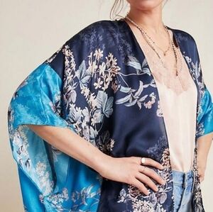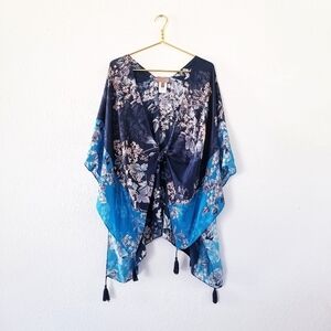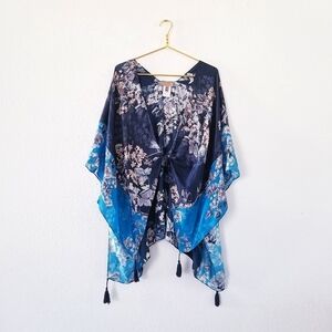 Anthropologie X Kachel Jamie Tasseled Kimono Viscose Silk Blend One Size Tunic